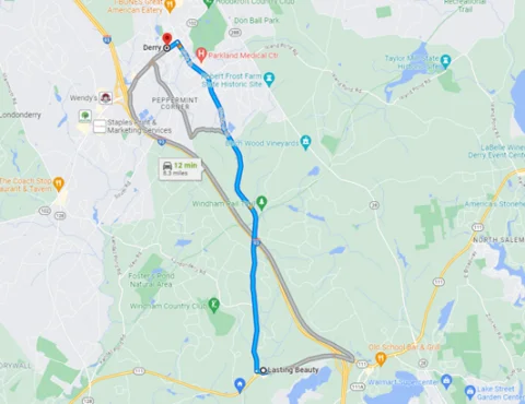 It takes roughly 12 minutes to get from Derry NH to Windham NH